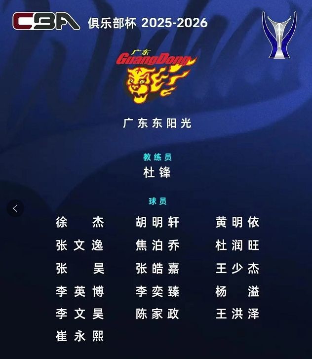 CBA新赛季即将开打,近日CBA官方也公布了各队参加俱乐部杯的大名单。广东宏远方面,仍然是杜锋挂帅,徐杰胡明轩领衔,张文逸、黄明依、杜润旺、张昊、张皓嘉、王少杰、李英博、李亦臻、杨溢、李文昊等上赛季球员均在名单上。两位新援崔永熙、焦泊乔入选,新升入一队的陈家政和王洪泽在列。这份名单并不包含外援,有球迷猜测,广东是打算一次性为所有外援完成注册工作,目前已经官宣了三位外援,而基本确定加盟的“奶茶”萨姆纳则因为四川男篮准入一事依然没有正式官宣。